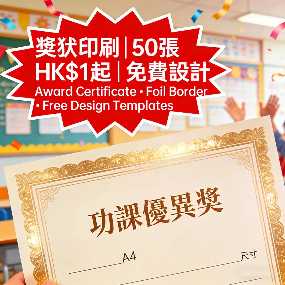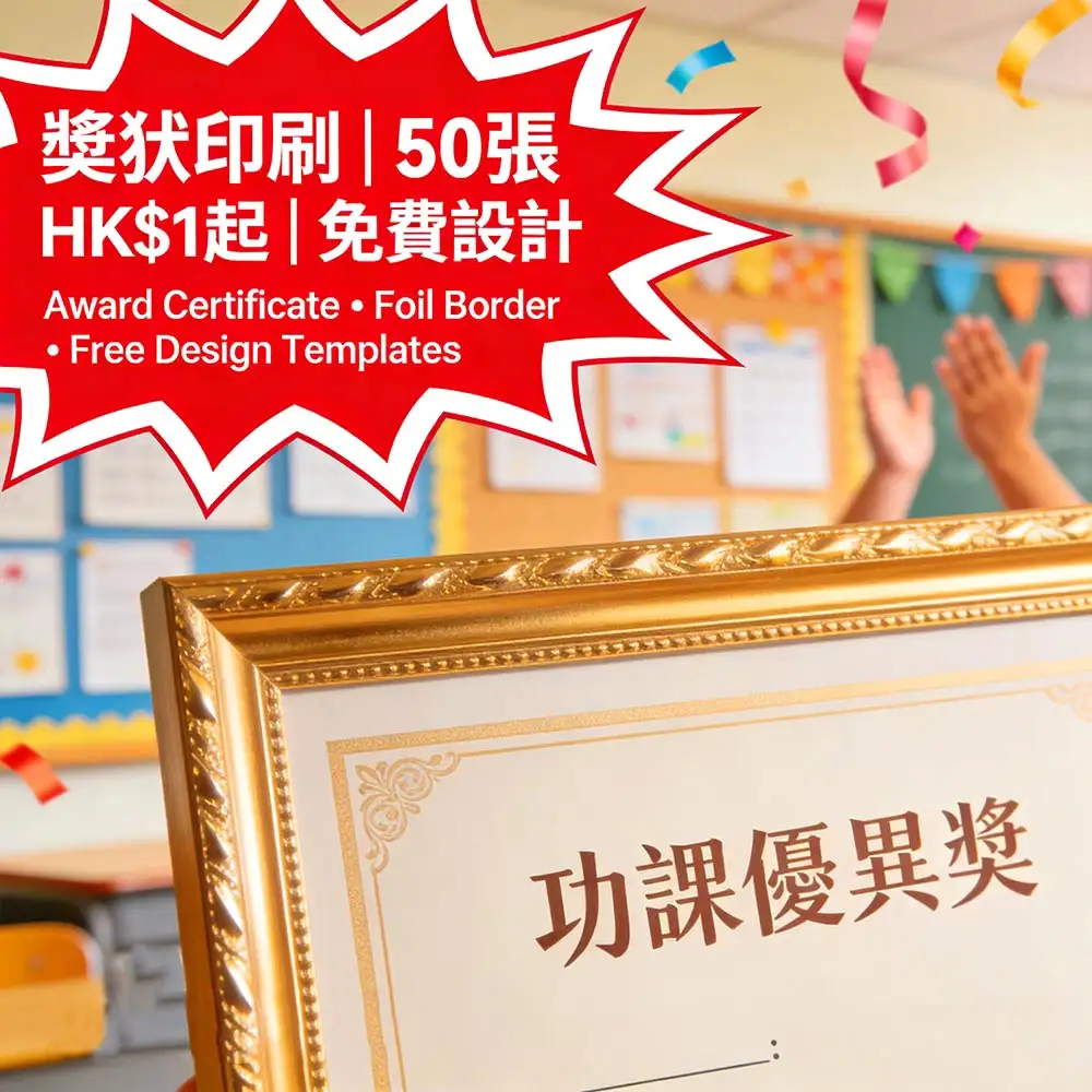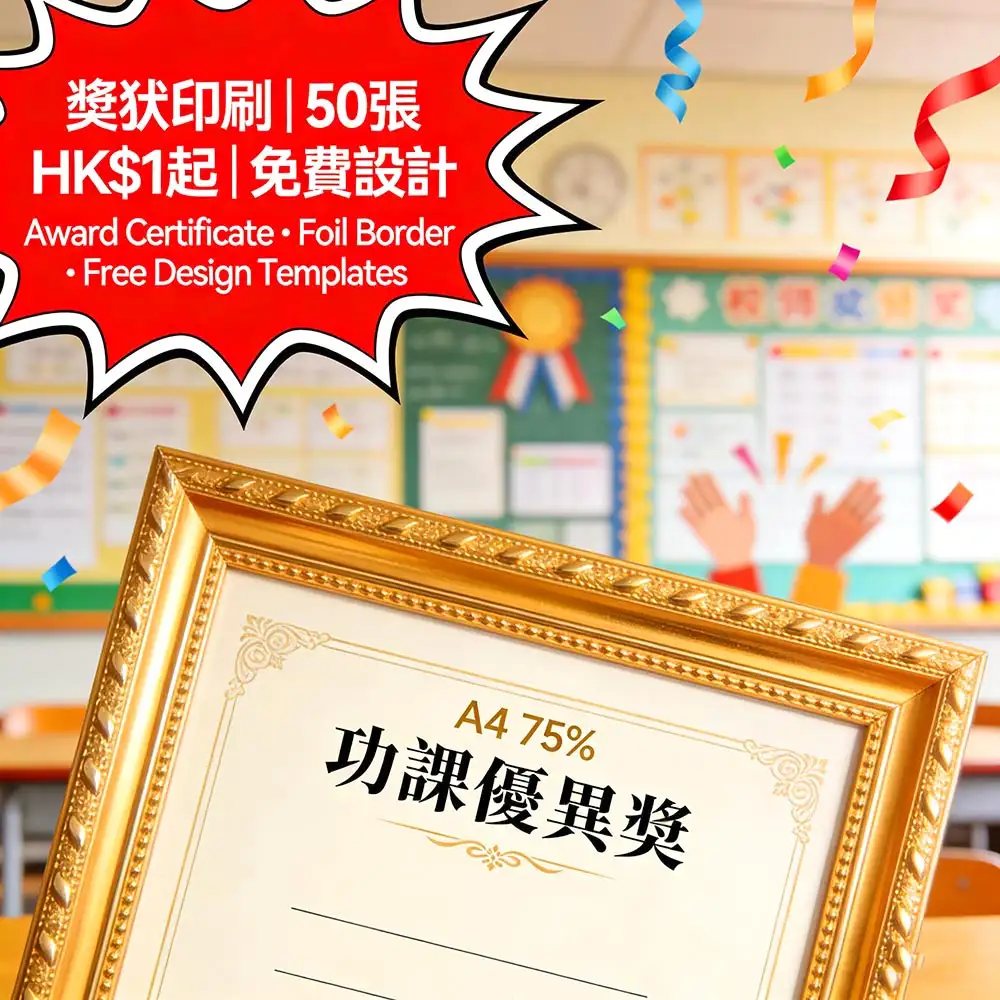 香港學校頒獎首選方案,A4燙金邊框設計|校內比賽/頒獎禮專用,50張起印|單價HK$1起,提供免費多款設計模板|防褪色印刷,讓頒獎儀式感提升90%,行政成本降低65%。更多詳情儘在智印港提供的專業校園教育印刷服務 。