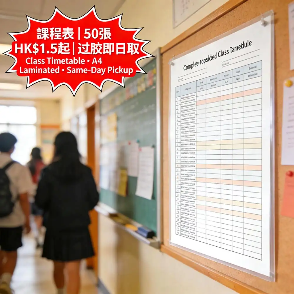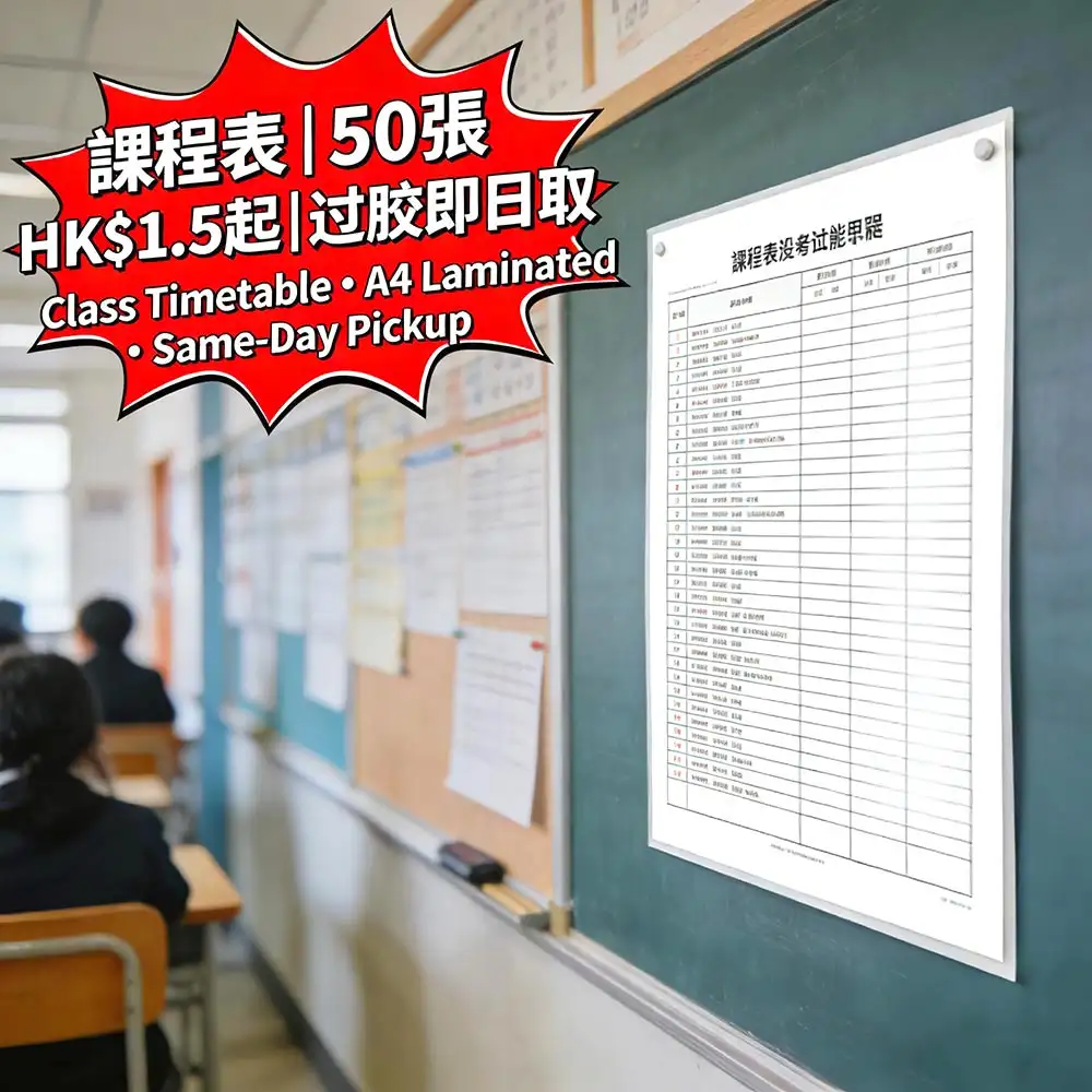 香港學校/辦公室課程表首選方案,雙面過膠防污耐磨,50張起印|單價HK$1.5起,提供免費設計模板|旺角即日取件,讓教室/辦公室管理成本降低60%,效率提升85%。更多詳情儘在智印港提供的專業校園教育印刷服務 。