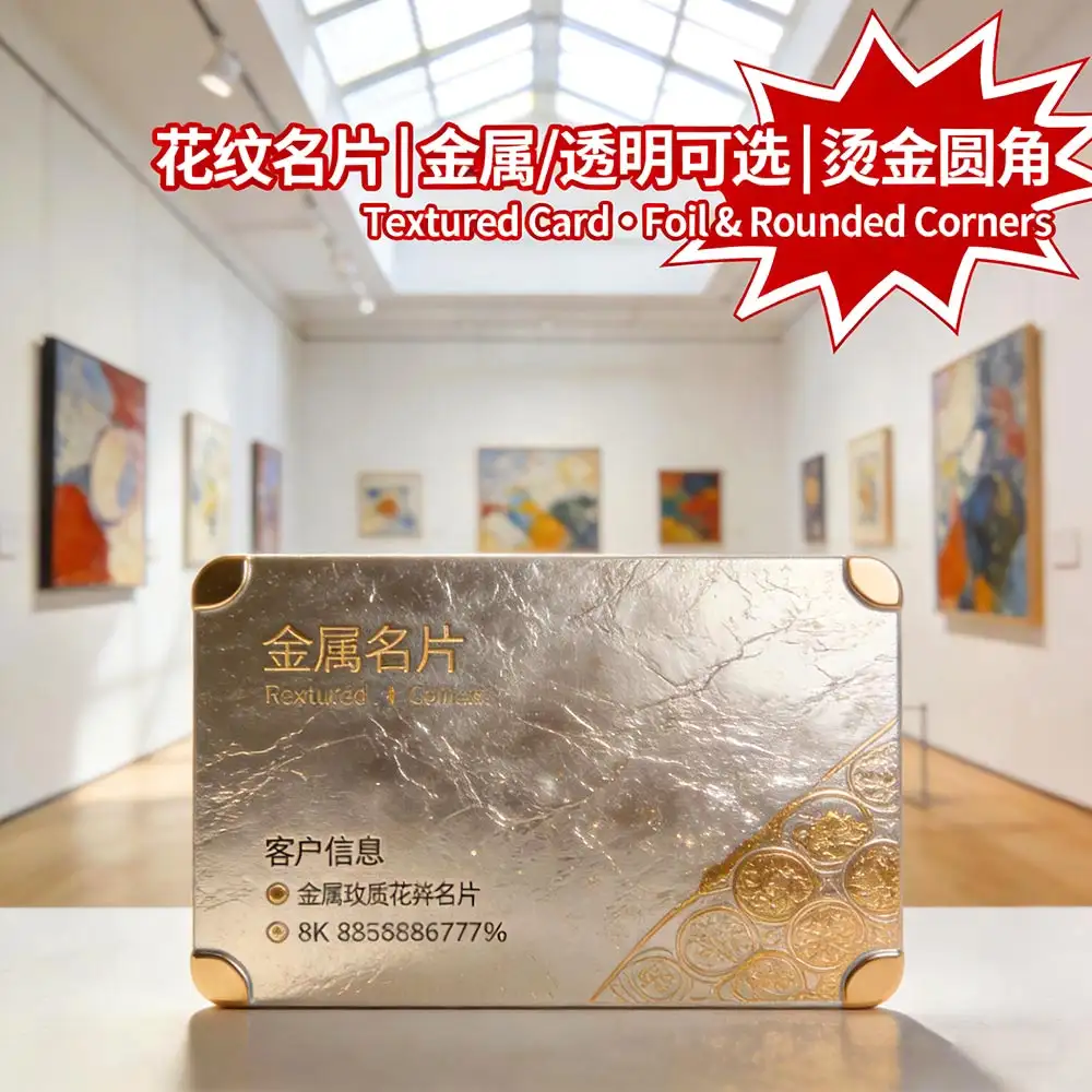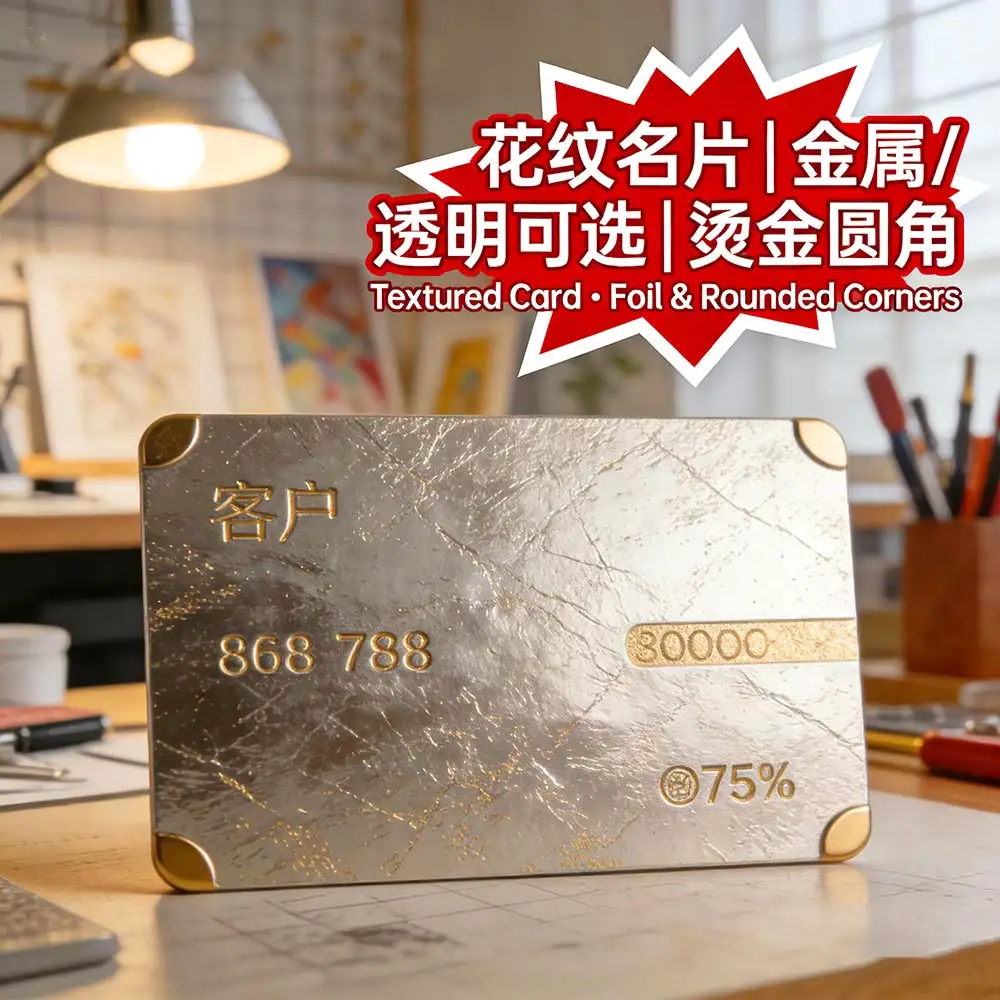 公司名片:标准双粉咭+烫金LOGO,统一VI|个人创意:特种纸+圆角裁切,设计灵活|高端商务:黑卡纸+全版烫金+击凸工艺,彰显质感|初创公司可从经济款入手,支持小批量试印
