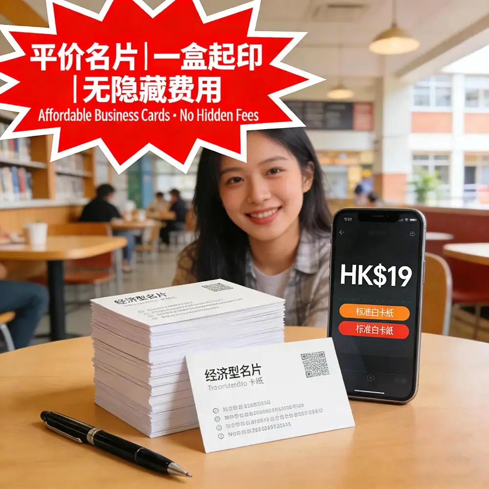 名片不用花大錢!智印港提供全港最透明的平價名片印刷服務:最低50張起印,享免費專業設計+全港順豐包郵,無任何附加費。從學生到自由工作者、初創企業,都能輕鬆擁有高質感名片。