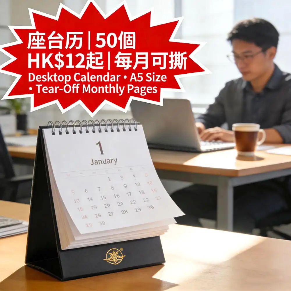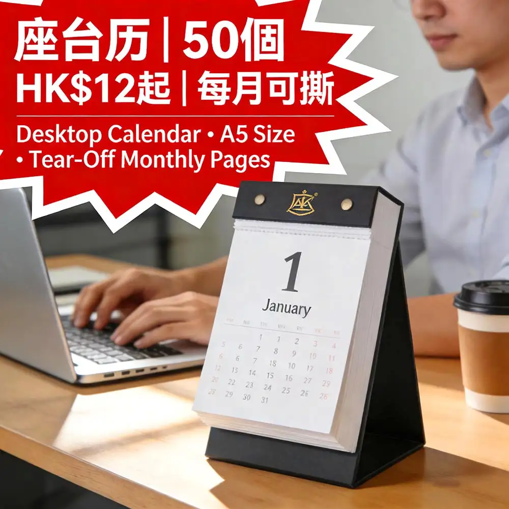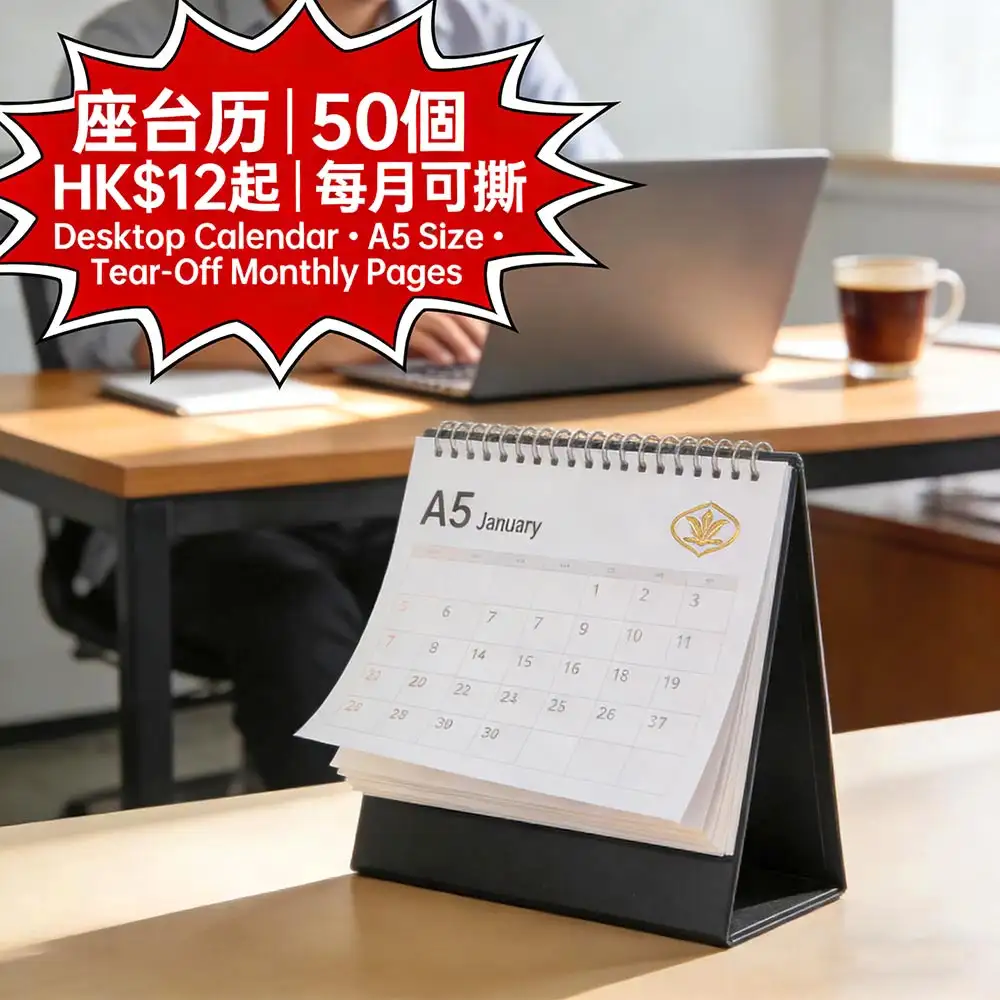企业台历:A5尺寸,每月可撕|烫金LOGO|50个起印,HK$12起|适合办公桌,提升企业形象