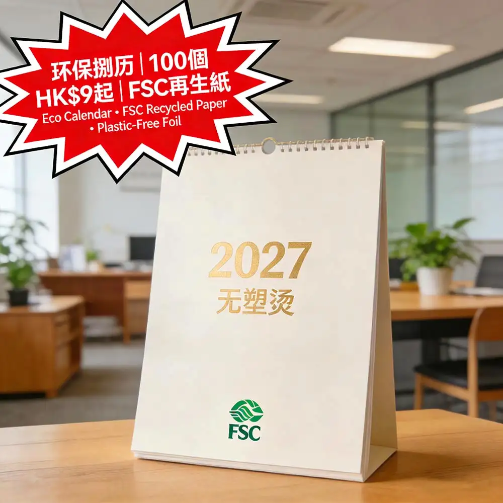 环保年历:FSC认证再生纸|无塑烫金工艺|100个起印,HK$9起|ESG认证,绿色企业首选