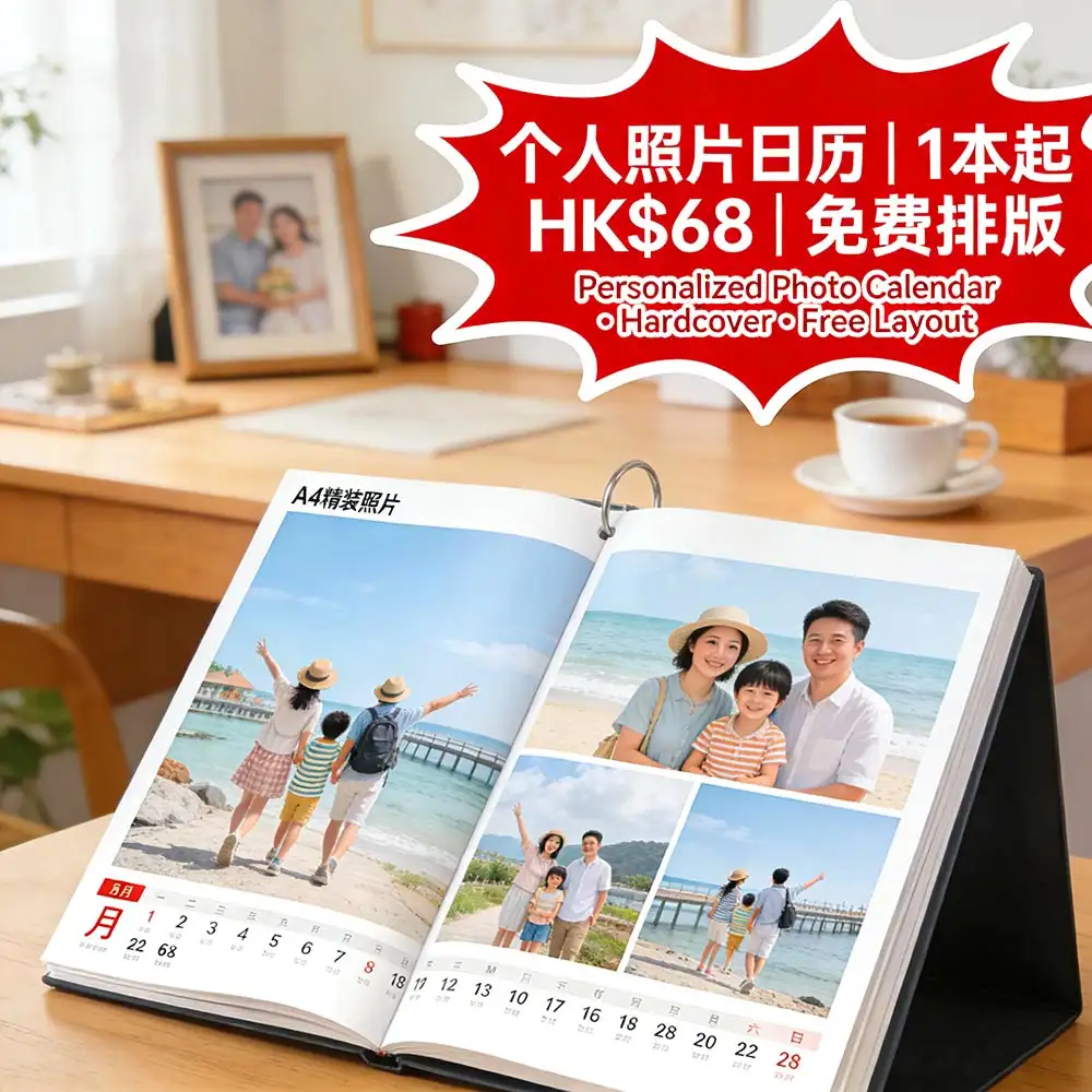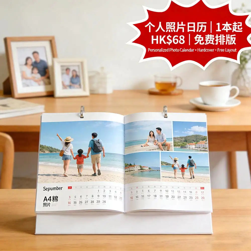 香港情感定制首選方案,12頁精裝照片日曆|A4尺寸可掛可放,1本起印|單價HK$98/本起(比市場便宜15%),提供免費專業排版|照片優化|30天保養,讓珍貴回憶變成每日陪伴,情感價值提升150%。更多詳情儘在智印港提供的專業年歷印刷服務 。