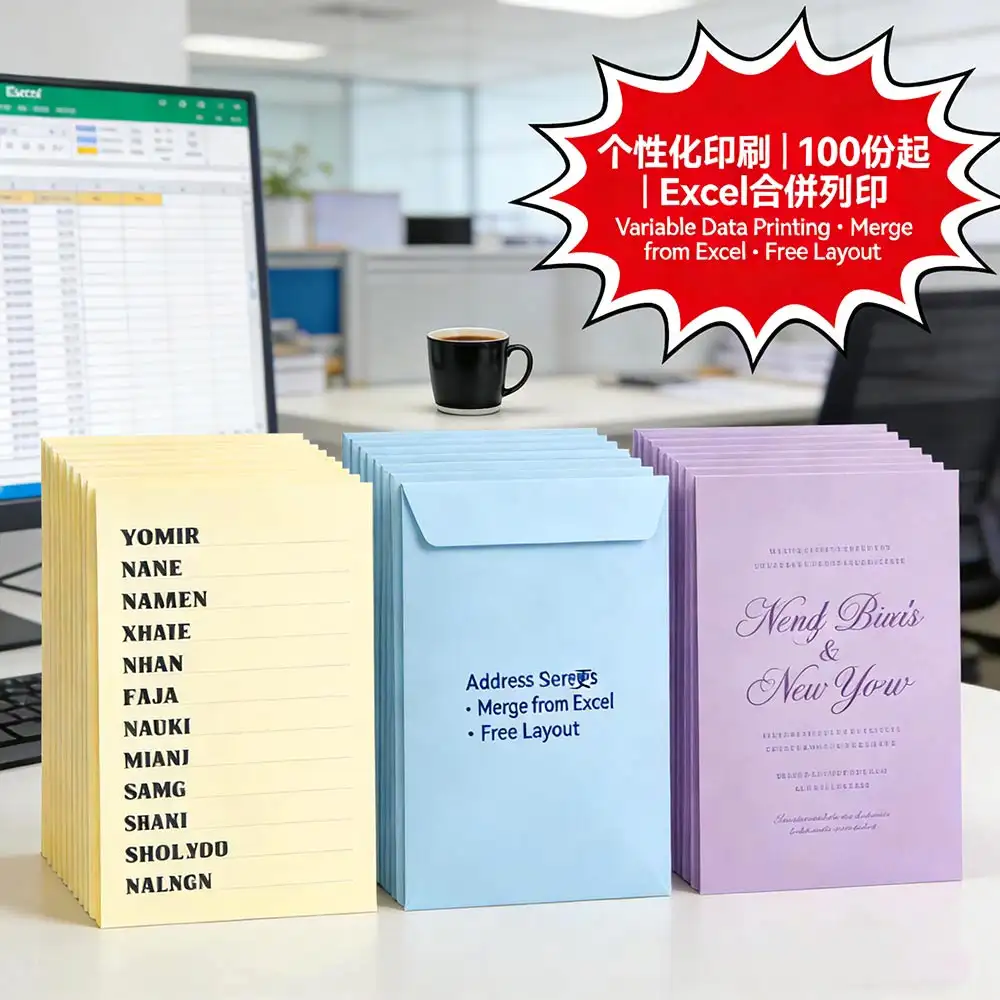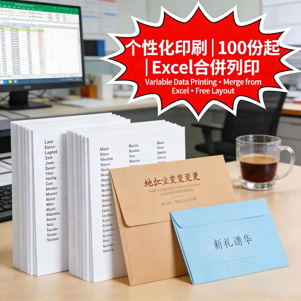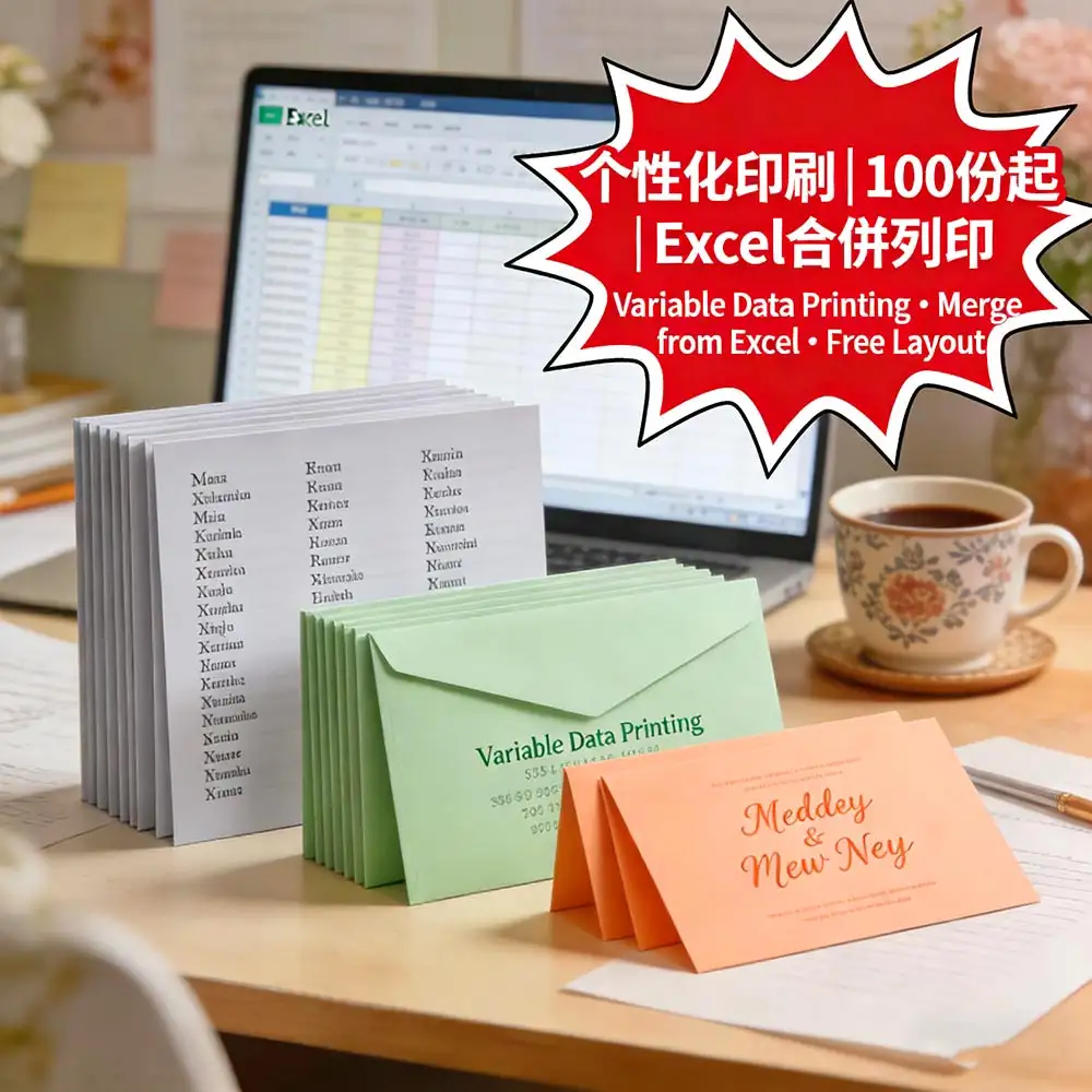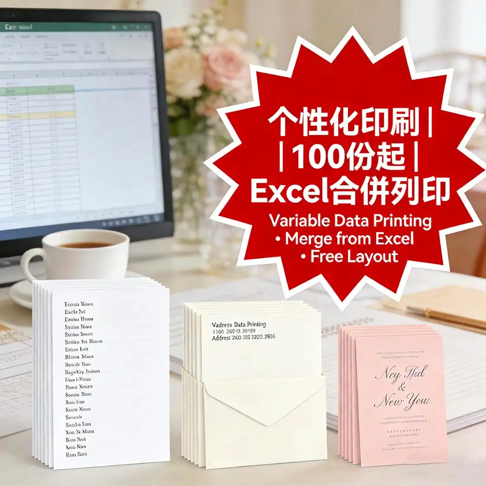 个性化印刷:Excel合并打印一對一名單/信封/邀請卡|100份起印|免费排版+数据核对