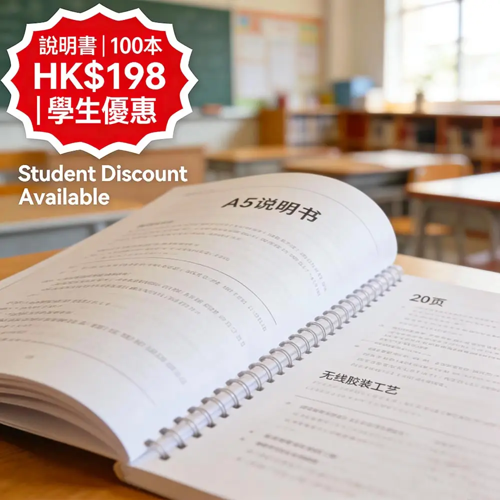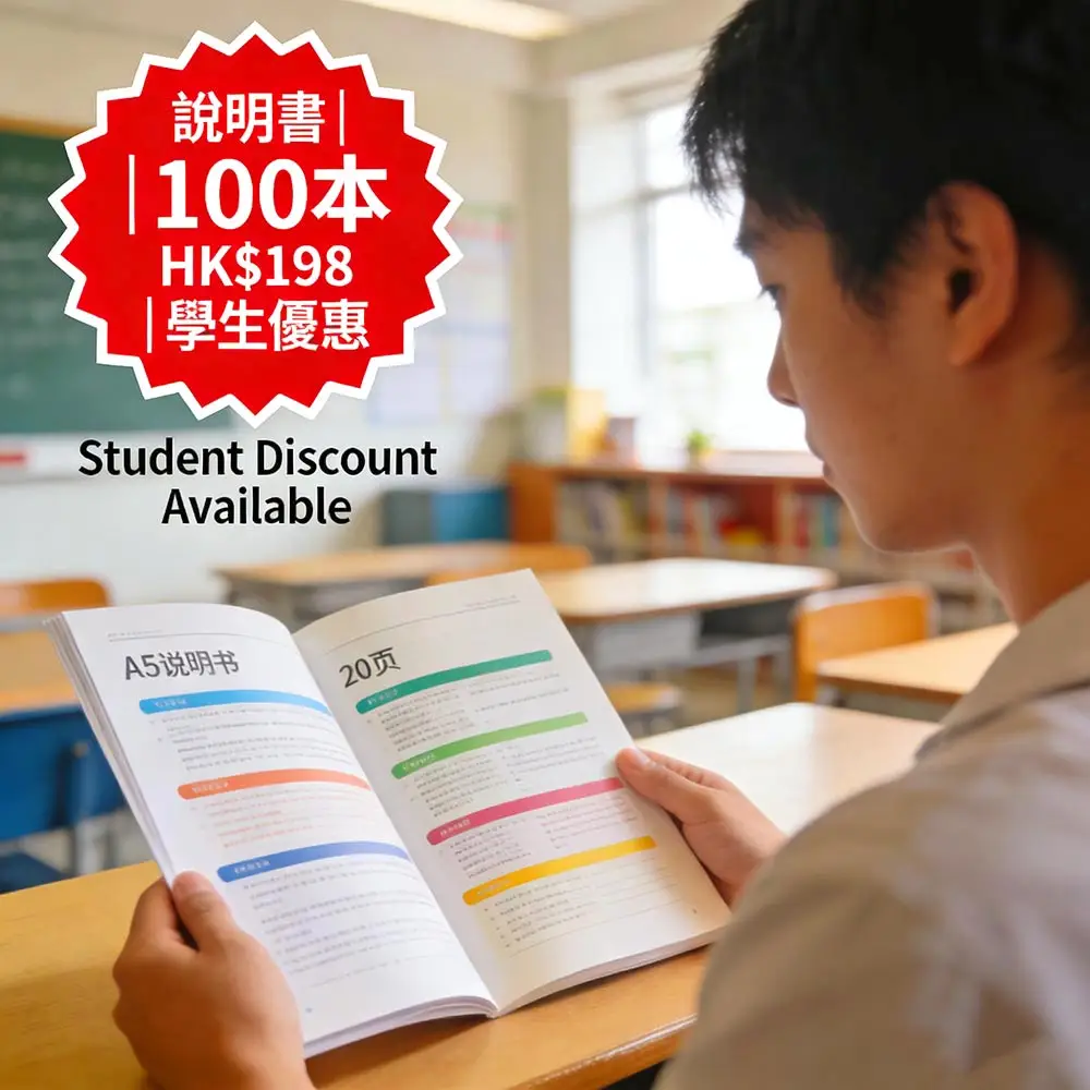 香港學生與教育機構首選的高性價比說明書方案:A5標準尺寸(148×210mm)、20頁內容(支援黑白或全彩)、無線膠裝工藝,100本僅需 HK$198(單本低至 HK$1.98,比市場便宜 50%)!專設學生專屬折扣,支援PDF直傳,文本清晰、裝訂牢固。由深圳智能工廠聯動生產,確保品質穩定,24小時內啟印,全港順豐直達。適用於教材、操作手冊、課程指南、實驗設備說明、培訓資料等場景,助您以極低成本打造專業級技術文檔,提升教學與溝通效率達 95%。更多詳情請見智印港提供的專業企業畫冊印刷服務。