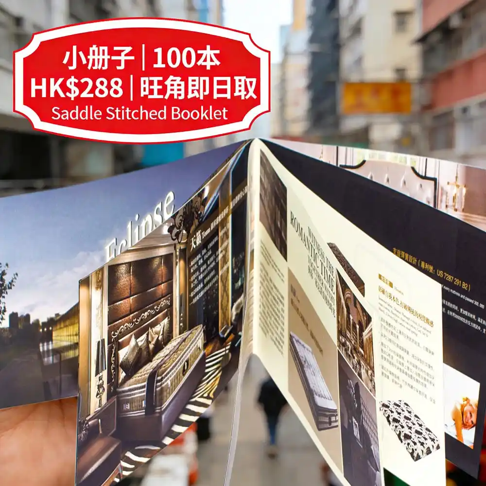 企业画册:A4精装+烫金,100本HK$688起|地产画册:A4+硬壳+烫金封面,50本HK$888起|婚礼画册:精装烫银+相片修图,20本HK$588起|产品目录:厚页胶装,100本HK$988起|学校成果册:校徽嵌入,50本HK$488起