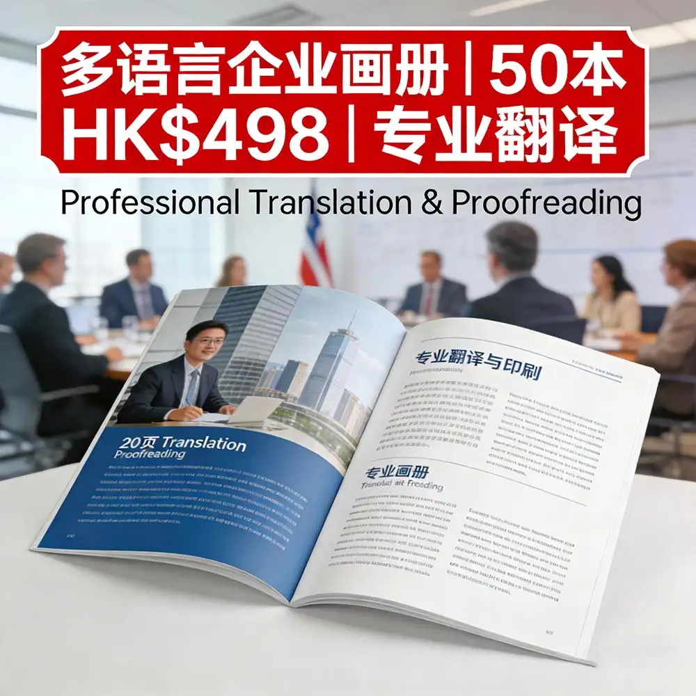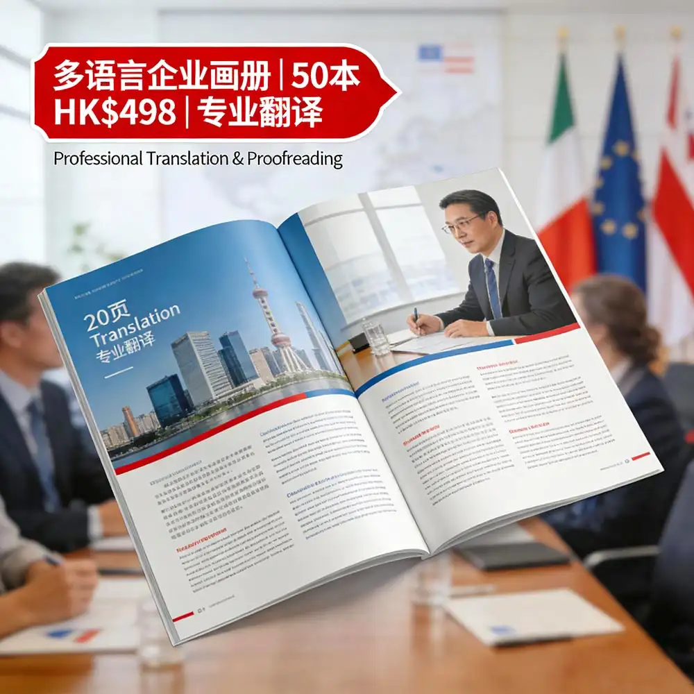 香港跨國企業與出口商首選的國際化宣傳方案:A4標準尺寸(210×297mm)、20頁全彩精裝、中英雙語同步排版,50本僅需 HK$498(單本低至 HK$9.96,比市場便宜 45%)!我們提供專業翻譯+校對服務,確保術語準確、語氣得體、符合國際閱讀習慣。畫冊採用250g硬殼封面+157g高顯色銅版紙內頁,精裝工藝牢固耐用,適合長期保存與高端商務場合。由深圳智能印刷工廠聯動生產,嚴格執行色彩管理與裝訂標準,3–5個工作天穩定交付,全港順豐直達送至辦公室、展會現場或海外合作方手中。適用於跨國公司品牌手冊、國際投資報告、出口產品目錄、ESG永續報告等場景,助您以極高性價比建立全球專業形象,品牌國際認可度提升達 90%。
