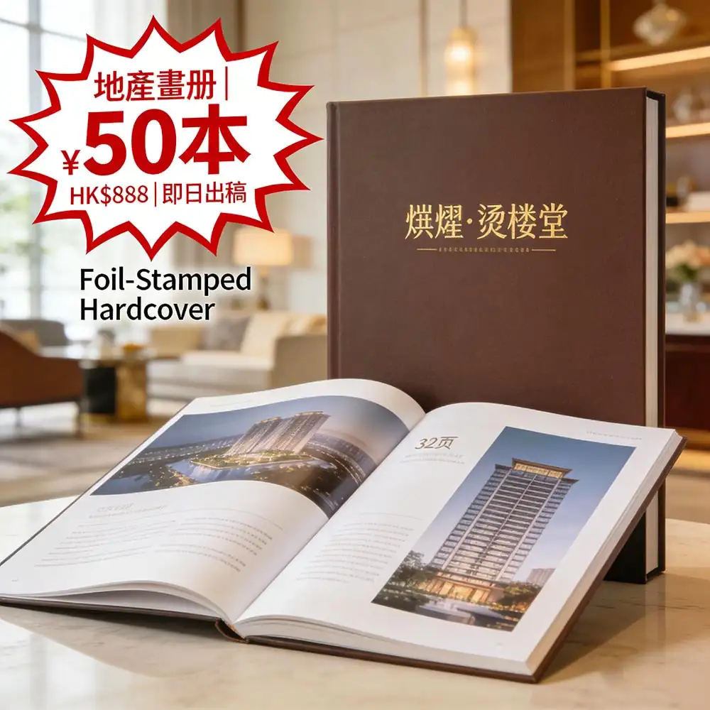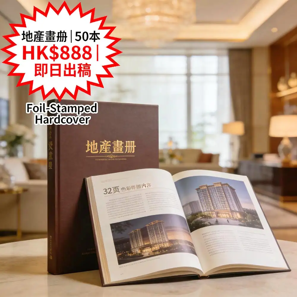 專為香港地產代理與發展商打造的高端畫冊方案:A4+大開本(230×300mm)、32頁全彩印刷,50本僅需 HK$888(比市場便宜 45%)!燙金封面為標準配置,支援即日出稿設計,由深圳智能工廠聯動生產,稿件確認後當日啟印,全港順豐直達。適用於新盤銷售手冊、豪宅推介、建築提案、投資說明等高價值場景,助您提升項目專業形象達 80%。更多詳情請見智印港提供的專業企業畫冊印刷服務。