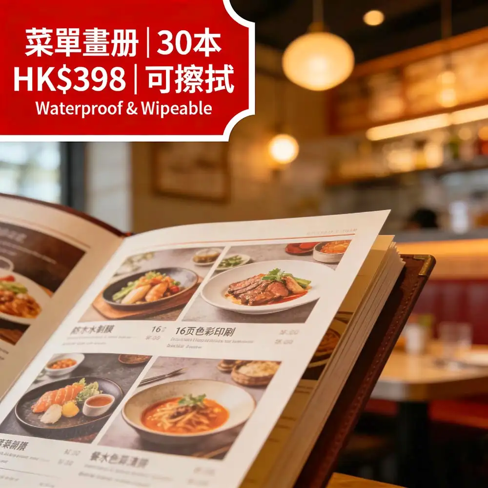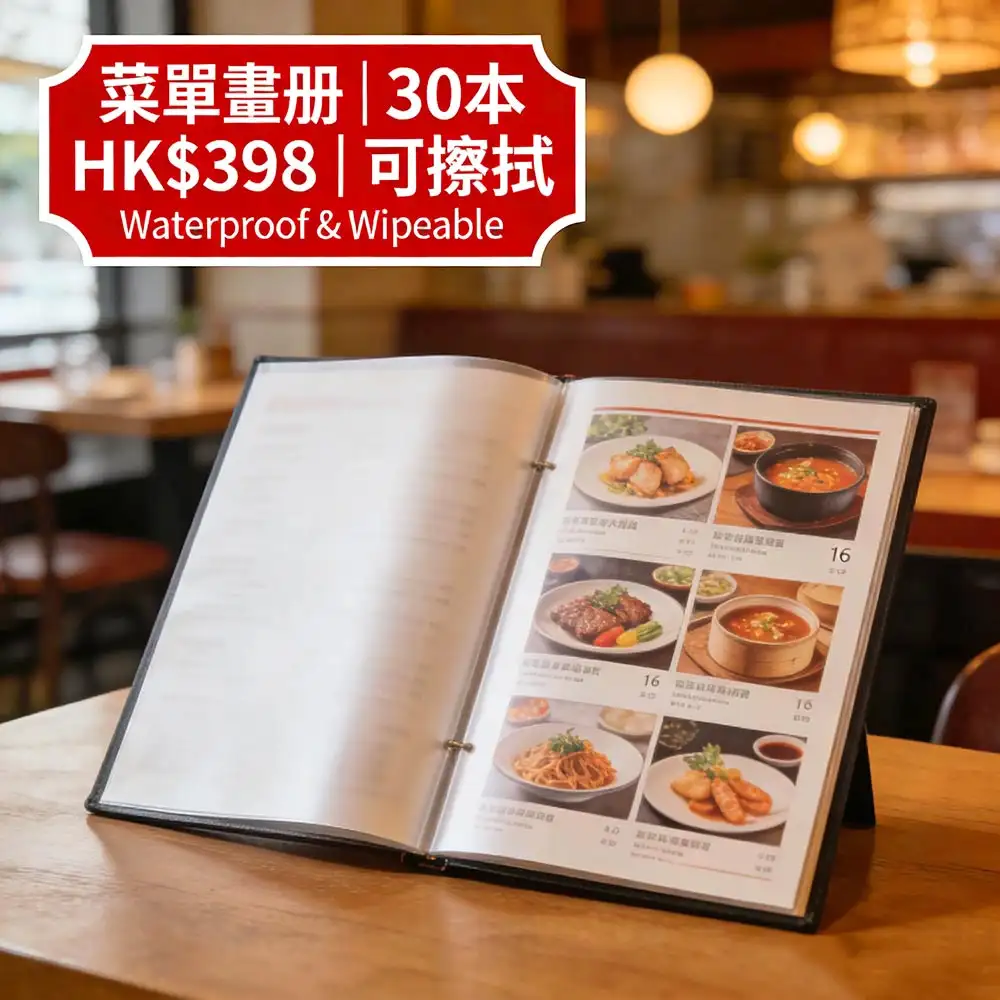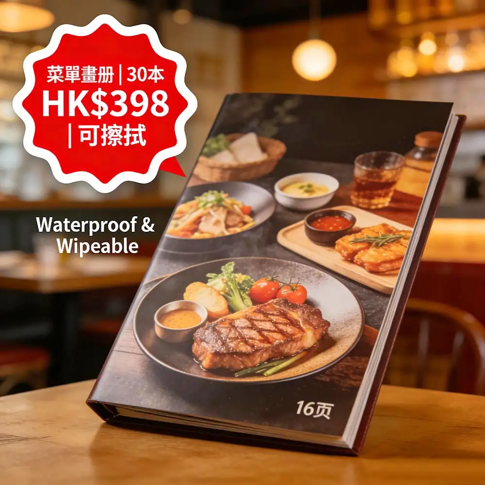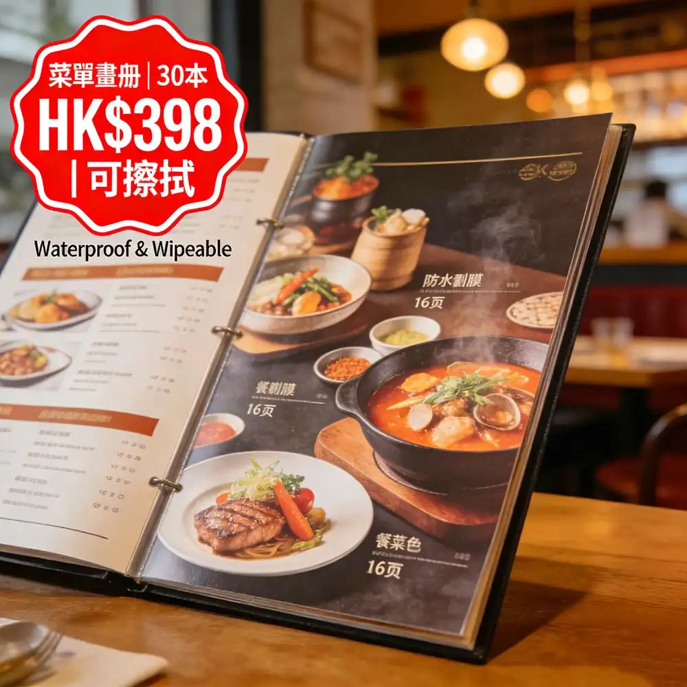 香港茶餐廳、咖啡店、酒樓首選的高耐用菜單方案:A4標準尺寸(210×297mm)、16頁全彩印刷、雙面食品級防水覆膜(霧膜/光膜可選),30本僅需 HK$398(單本低至 HK$13.27,比市場便宜 55%)!菜單表面可反覆擦拭清潔,有效抵抗油漬、醬汁、指紋與日常磨損,大幅提升使用壽命。由深圳智能印刷工廠聯動生產,確保色彩鮮豔、膜層均勻,最快當日出貨,全港順豐直達送至餐廳、廚房或新店開業現場。適用於茶餐廳、咖啡店、甜品店、酒樓、快餐連鎖等場景,助您以極低成本打造專業、衛生、高質感的顧客體驗,品牌形象提升達 90%。