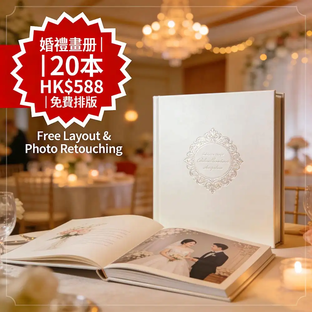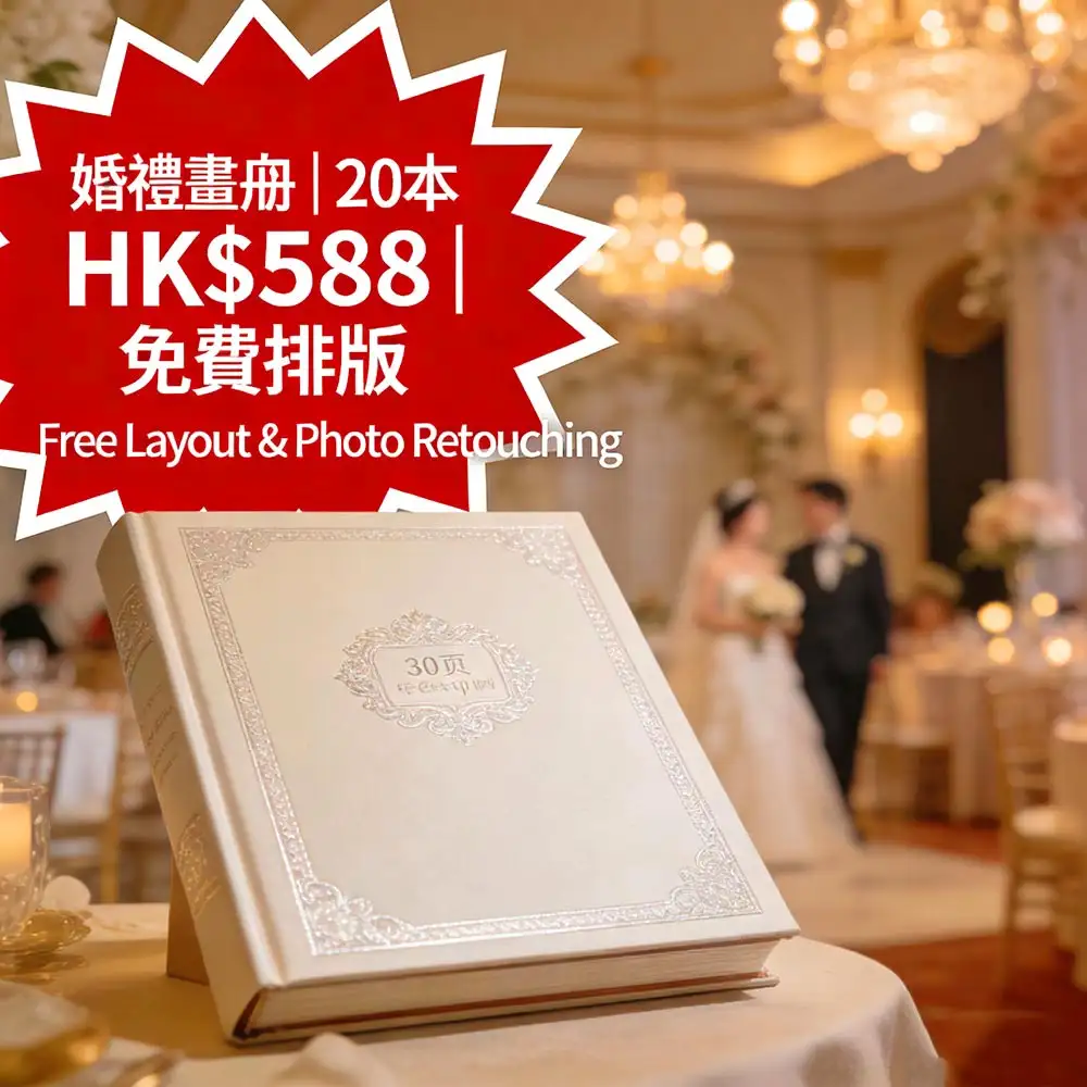 香港新人首選的高質感婚禮畫冊方案:A4大尺寸(210×297mm)、30頁全彩高清印刷、精裝硬殼封面+奢華燙銀工藝,僅需 HK$588 即可印製 20 本(單本 HK$29.4,比市場便宜 50%)!包含免費專業排版設計與相片修圖服務,讓每張照片都煥發光彩。由深圳高端印刷工廠聯動生產,確保色彩飽滿、觸感奢華,3–5 個工作天完成,全港順豐直達送至您家中或婚禮場地。適用於婚禮回憶、百日宴紀念、週年慶典或家族傳承珍藏,打造一生值得回味的視覺禮物。