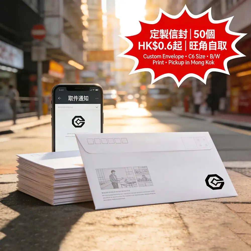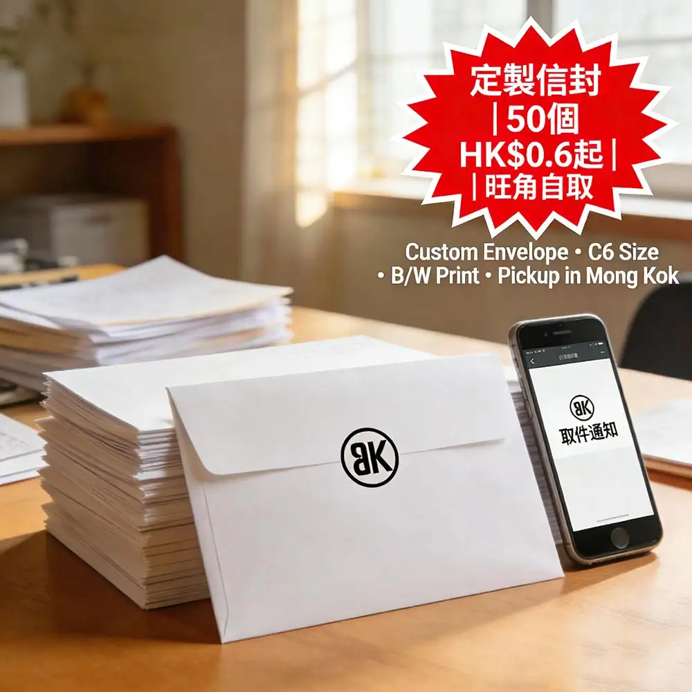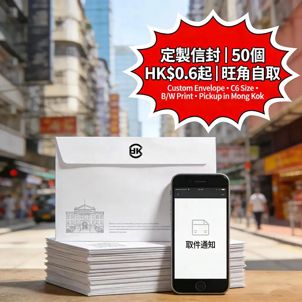 專為中小企、自由工作者及預算敏感客戶打造的經濟型定製信封印刷服務,採用國際通用C6 (114×162mm) 標準尺寸,支援單色印刷,最低僅需50個起印,單價低至HK$0.6/枚起,並提供免費簡易設計服務。更多詳情儘在智印港提供的專業信封印刷服務。