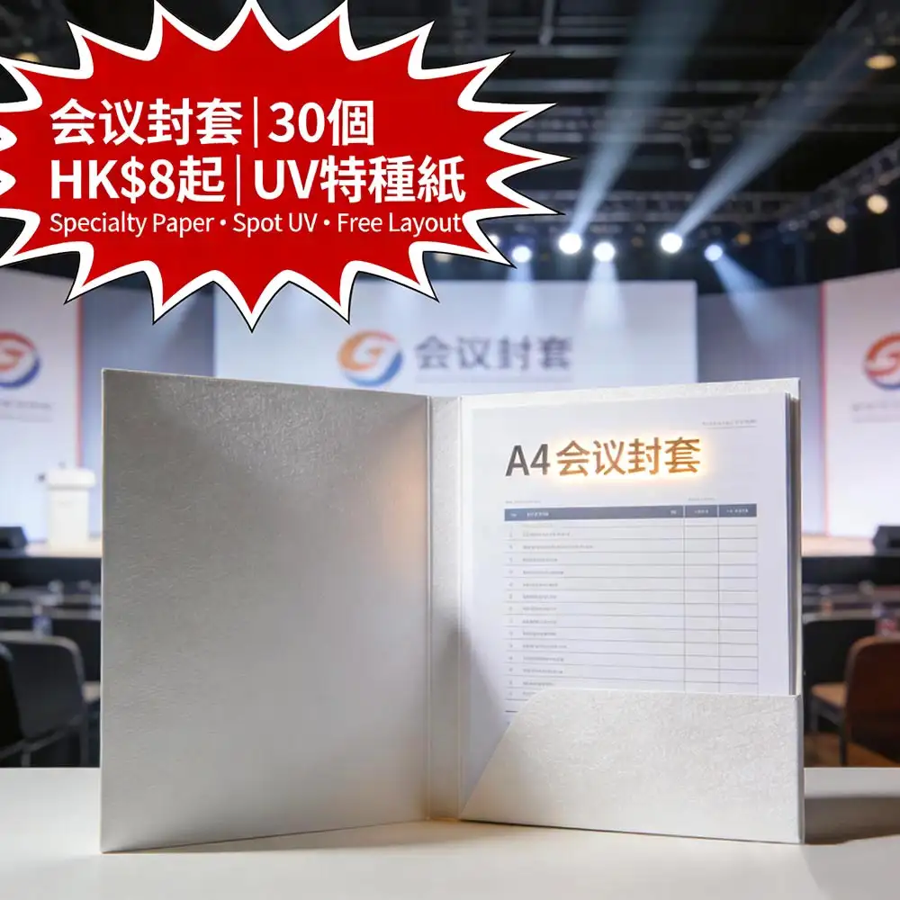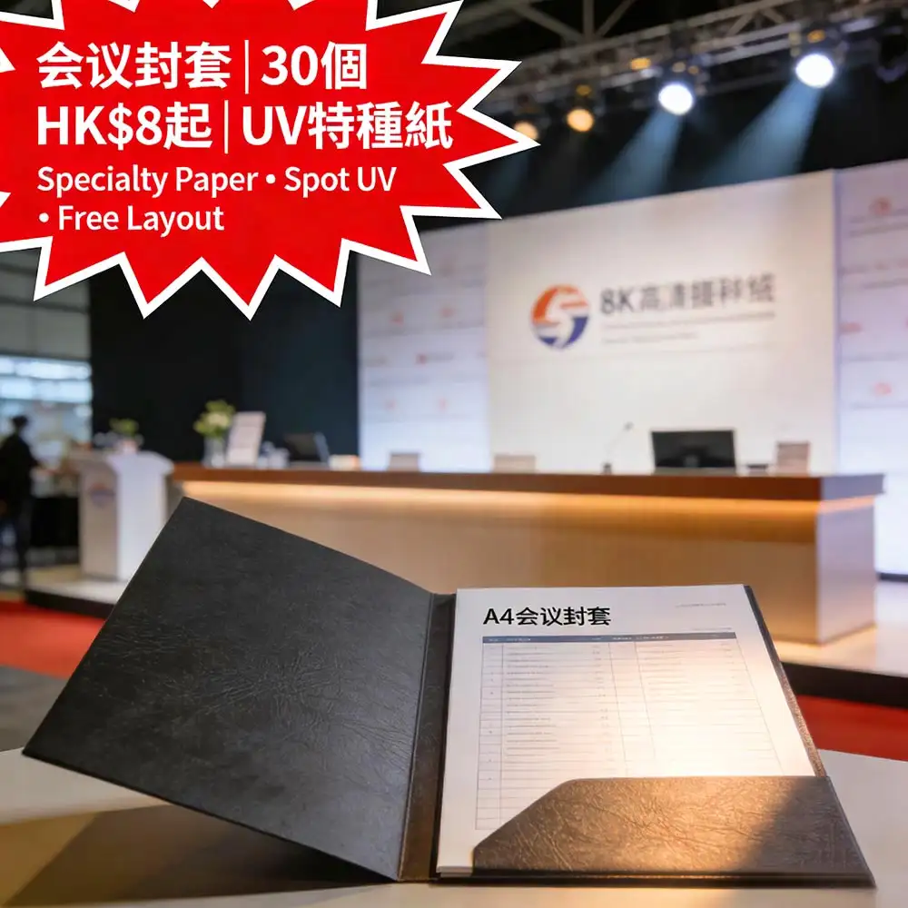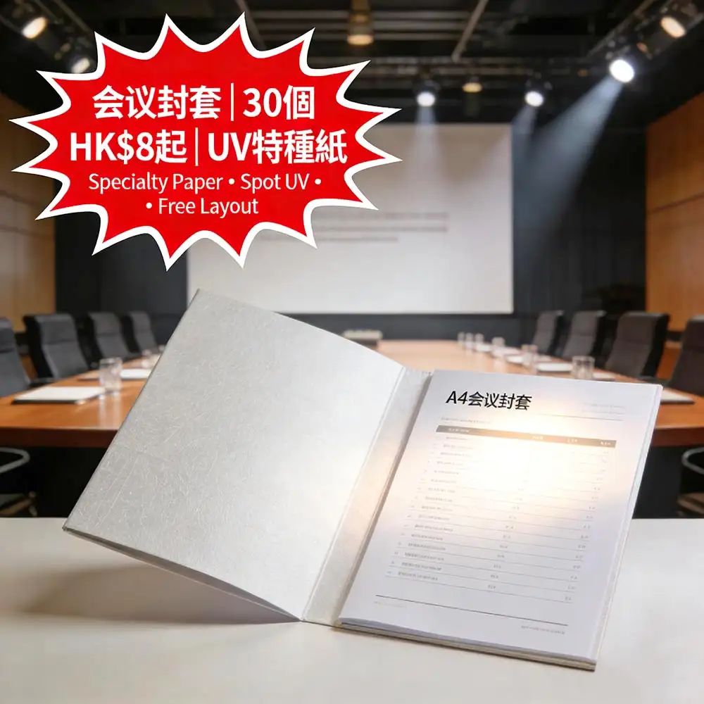 会议资料封套:雾面特种纸+UV局部光|30个起印|HK$8起/个|免费排版服务