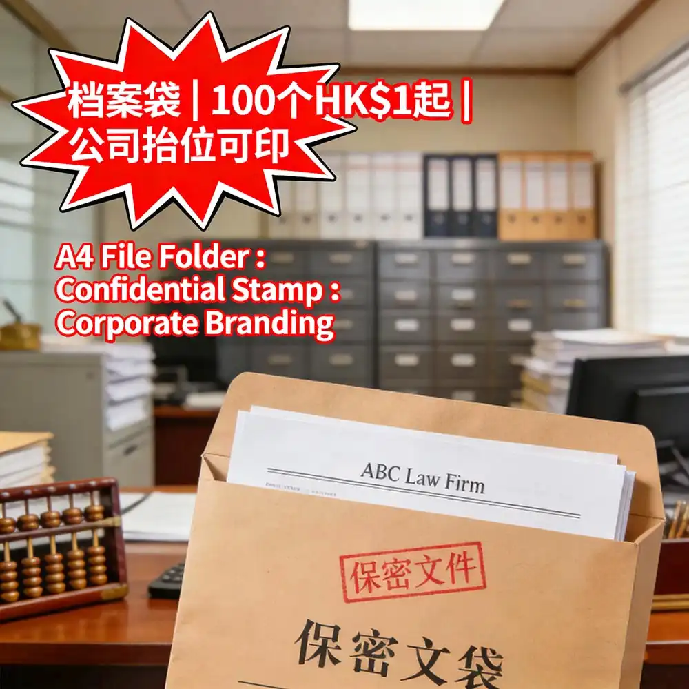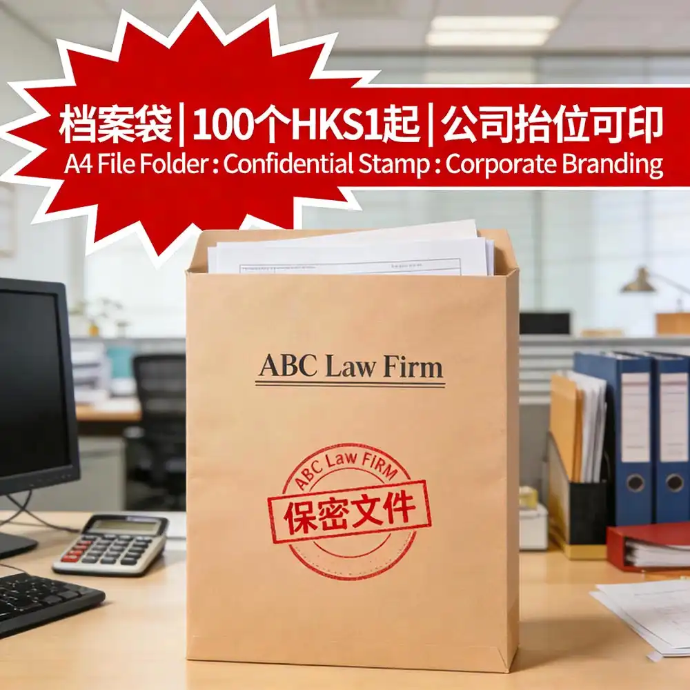 档案袋:A4标准尺寸|预留公司抬头|可选保密条款|100个起,HK$1起|适合办公室、律师楼、会计楼