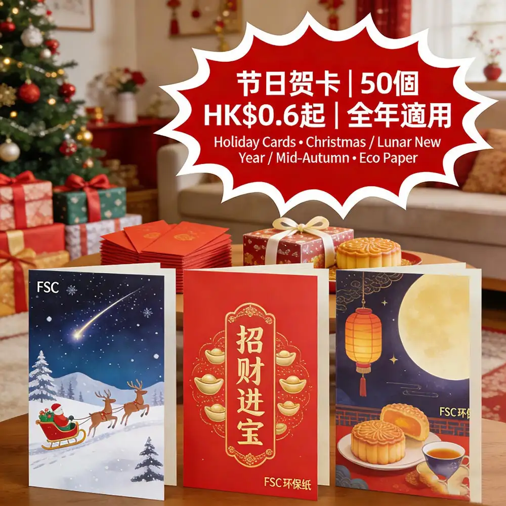 專為企業CSR部門、學校、社福機構及注重ESG的個人客戶打造的全年節慶禮儀解決方案,一套涵蓋聖誕卡、農曆新年紅包袋、中秋賀函三大節日場景,支援統一視覺設計,與您的利是封喜帖風格完美呼應。採用FSC認證環保再生紙(300g),碳足跡減少35%,可完全降解,觸感柔潤且挺括。最低50個起印,單價僅需HK$0.6起,並提供免費專業設計服務+節前3天確認即可出貨。由深圳ISO9001認證工廠直產,透過全港順豐直送,讓您的節日心意既溫暖又負責任。 更多詳情儘在 智印港 提供的專業利是封喜帖印刷服務。