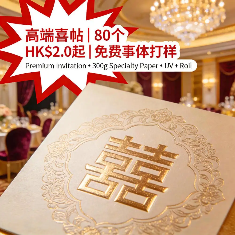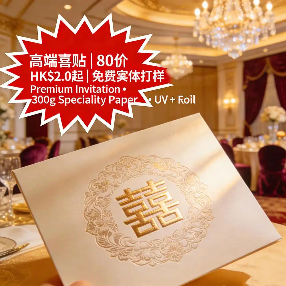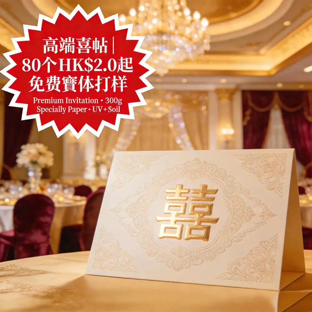 專為追求質感的新人打造的奢華婚禮囍帖解決方案,採用300g進口特種紙搭配UV凸字立體壓紋與精準燙金工藝(光澤細膩|觸感層次|抗折痕),標準尺寸150×210mm,完美匹配利是封喜帖類目視覺系統。最低80個起印,單價僅HK$2.0起,並提供免費實體打樣與專屬設計師全程跟進,確保囍帖與利是封在婚禮、回門、派利是等場景中風格統一、儀式感滿分。更多詳情儘在智印港提供的專業利是封喜帖印刷服務。